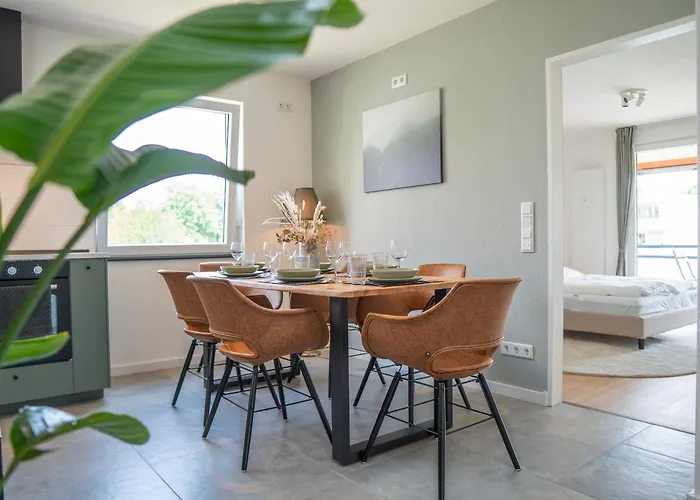 Per goderti la tua vacanza a Bad Neuenahr-Ahrweiler, alloggia in Heimwärts - Design Wohnung für 6 in Bestlage Bad Neuenahr-Ahrweiler, di 100 m^2, che si trova a 10 minuti in auto dal Kirchengemeinde St. Laurentius e a 2 km dal Suore Orsoline di Calvarienberg. Gli ospiti possono usufruire di Wi-Fi sia per motivi di lavoro che di svago.